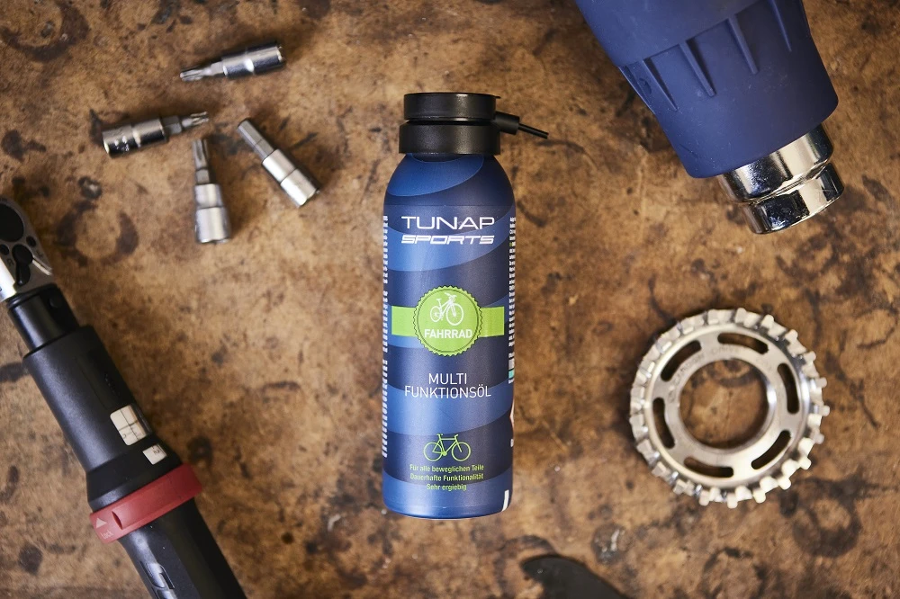 Wer seinem Rad nach dem Waschen oder zwischendurch etwas Gutes tun will, findet mit dem TUNAP SPORTS Multiöl wirksame Hilfe.